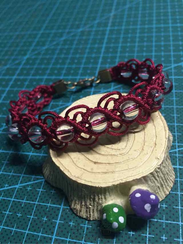 斜卷结手链,大红色应该会更好看……