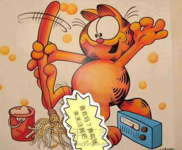 丙烯画,墙上的加菲猫