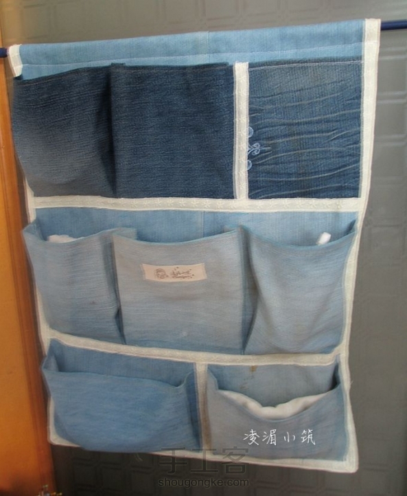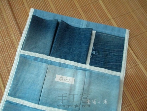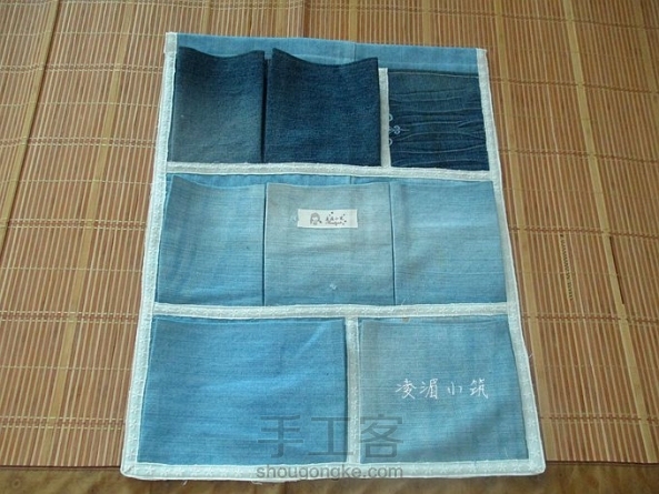 【凌湄小筑】又一个牛仔挂袋——继续牛仔裤改造,突发奇想,用花边代替包边条包的边,效果还不错呵呵