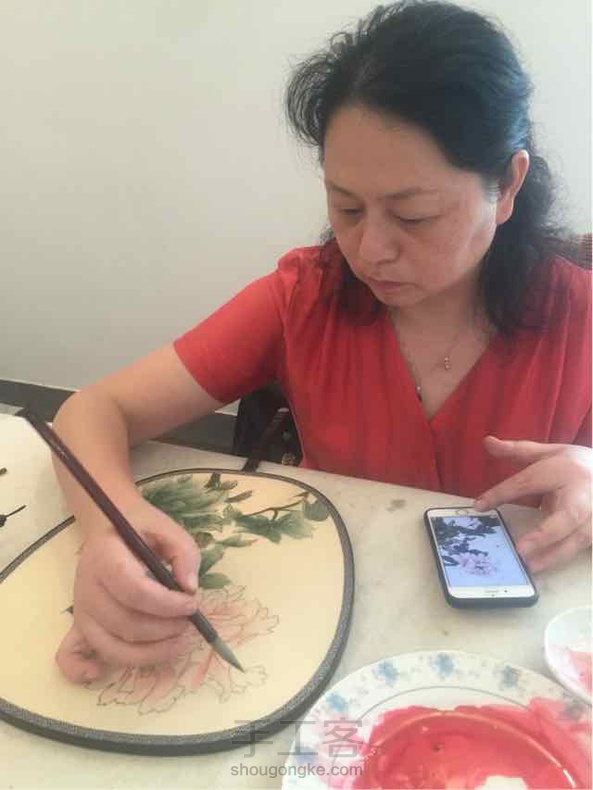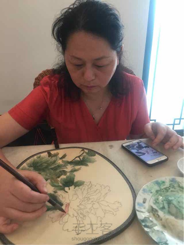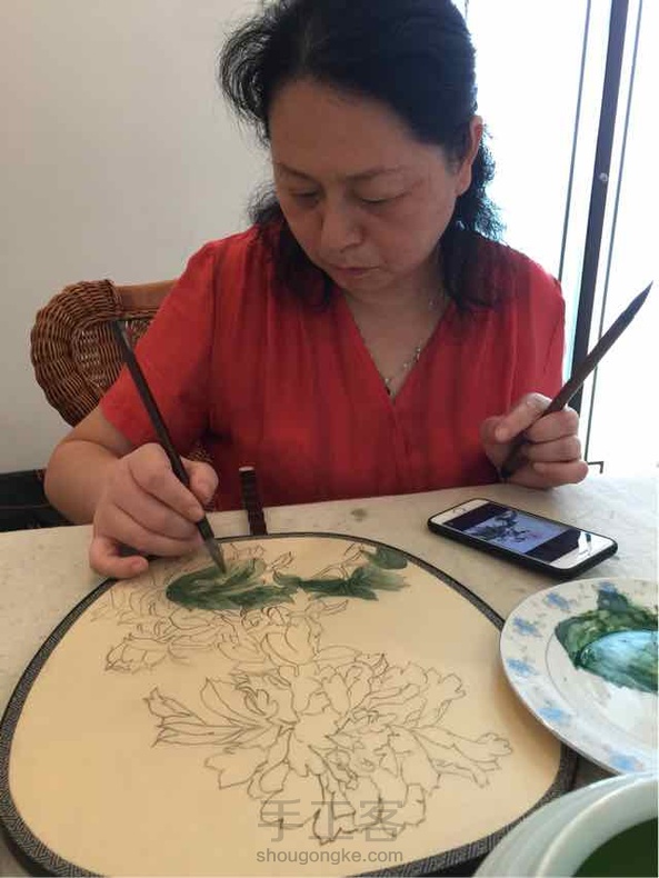 今天继续牡丹团扇