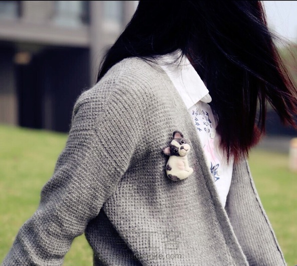 今天带着我的法斗胸针出去溜啦一圈~好稀饭~~~配灰色黑色衣服都好看!吼吼!