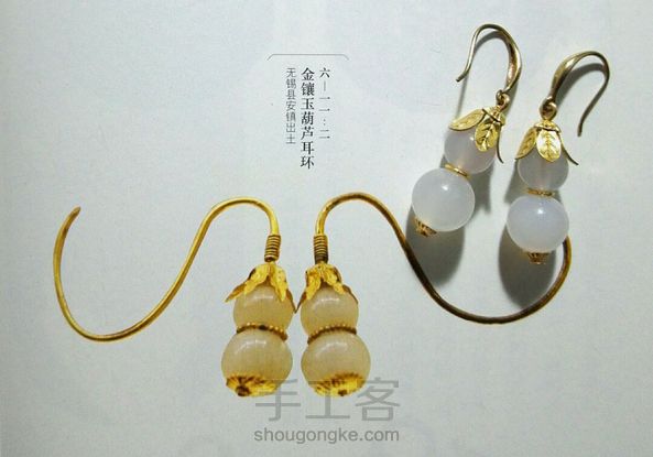 【壹•耳环】黄铜镶白玛瑙葫芦耳环 仿明式金镶玉葫芦耳环,无锡县安镇出土
