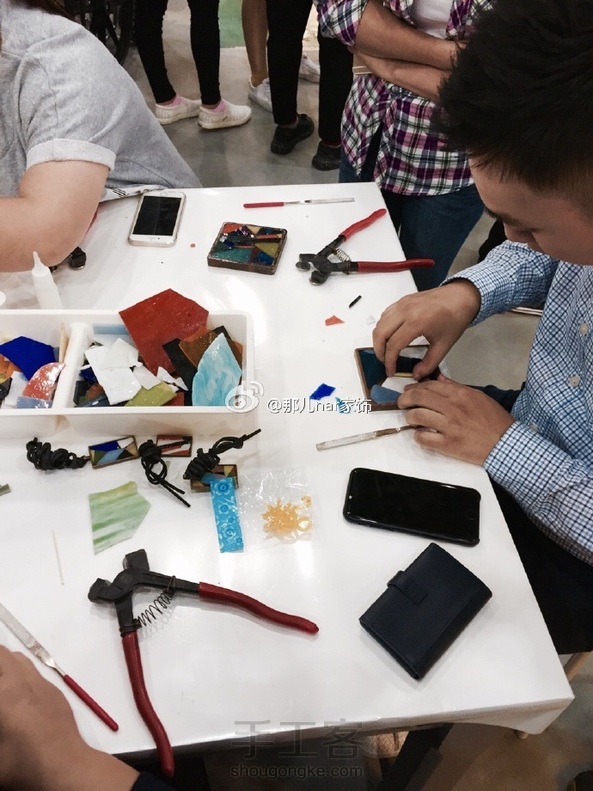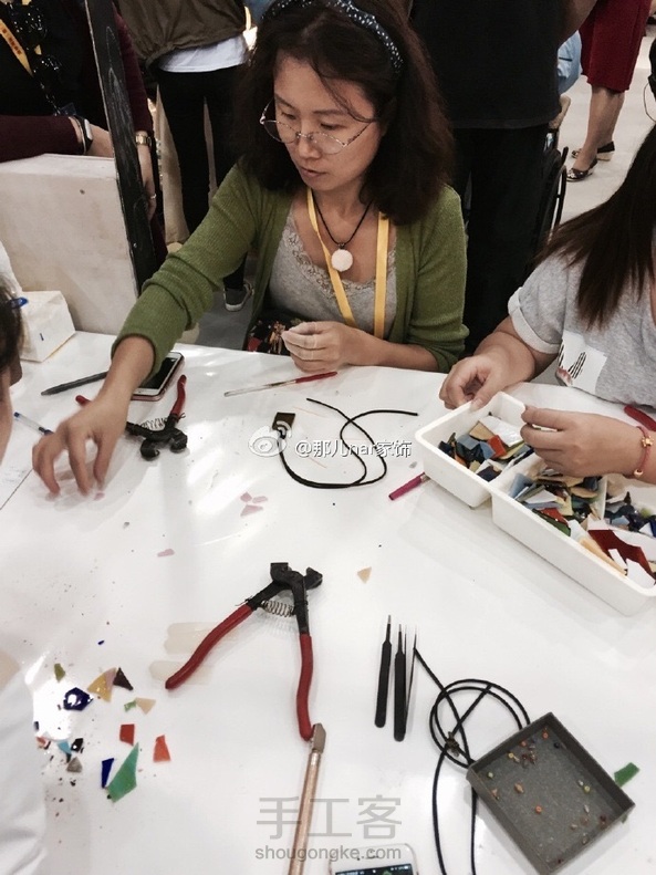 硬“挤”了个小沙龙出来,只需要花30元就可以体验一个彩色玻璃首饰diy,这倒贴的生意会持续4天,别错过啦。中午忙到两点多才吃上,谢谢梅宗主人肉饭[爱你]。谢谢大家的热情,明天继续!