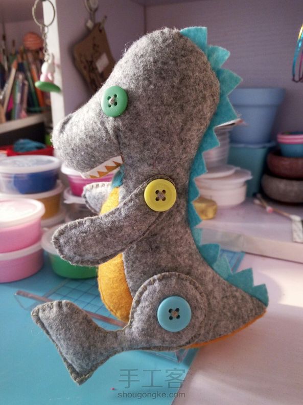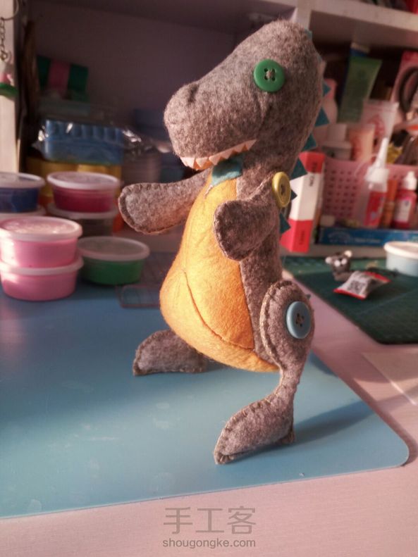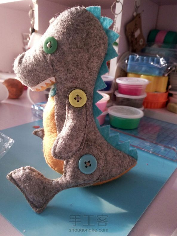 给儿子缝个小恐龙。针线活相当烂。对付缝好。😂