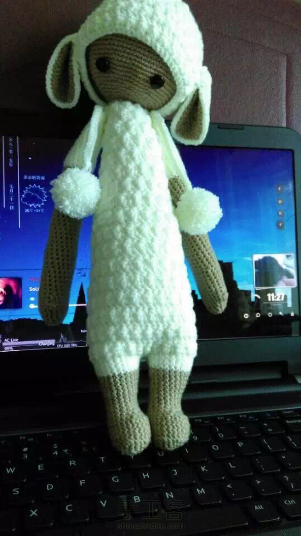 重新钩了羊lala 更换了枣针变为「变化的中长针三针枣型针」 跟换了线 眼睛换为蘑菇扣 新版净身高42cm