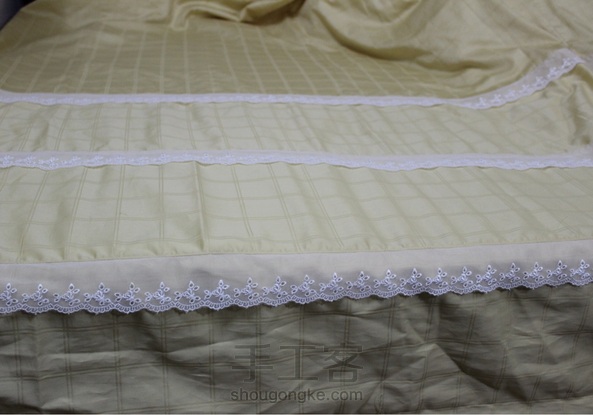 24cm乘3.6米的提花贡缎刀口拼成2米乘2.3米被套,点缀上蕾丝花边,是否有公主风呢?