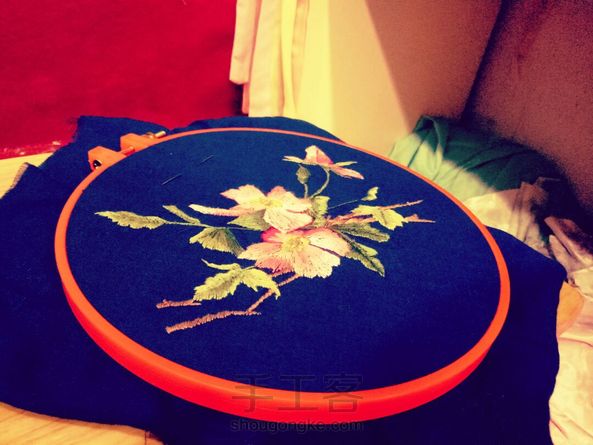 😂照骗比实物好看系列,第一次绣,第一次绣就用这么深颜色的底布我也是作死小能手啊,绣的时候感觉眼睛啊要瞎掉了😔图是网上找的款式,第一次绣所以花朵部分绣的很疏,叶子部分开始就好多辣,拆掉绷之后缝了一个小包包~放个手机零钱神马的足够辣~新手勿喷( •̥́ ˍ •̀ू )