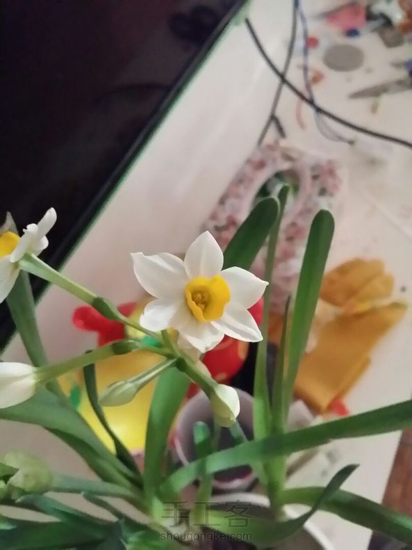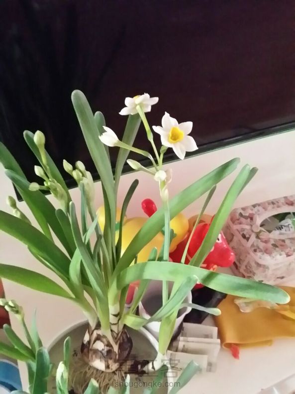 经过精心培养,我们家的水仙花开了,原来水仙花这么小呀。好看吗?