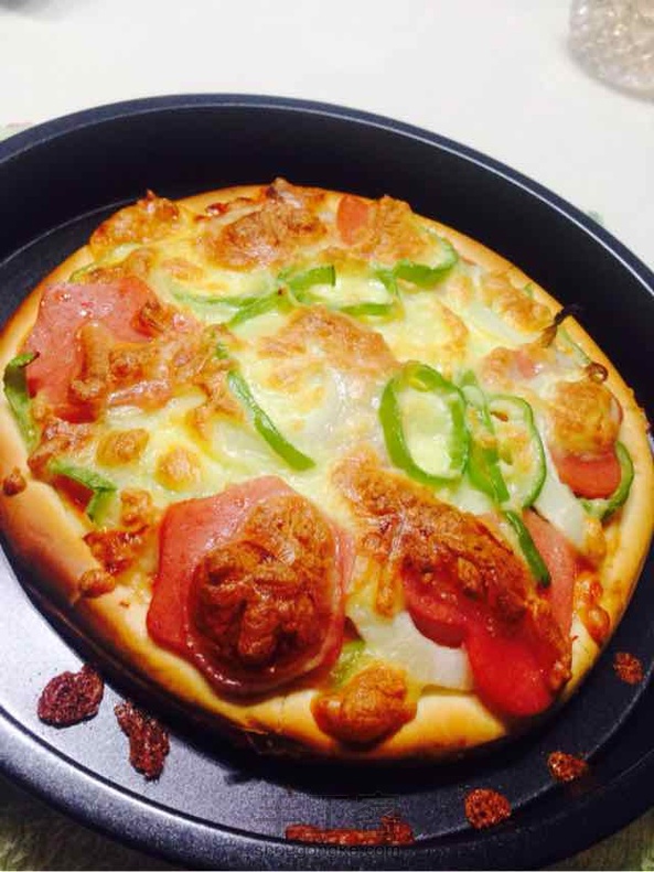 自己做的披萨,有点焦了🍕会拉丝