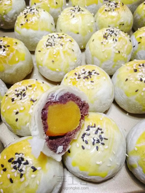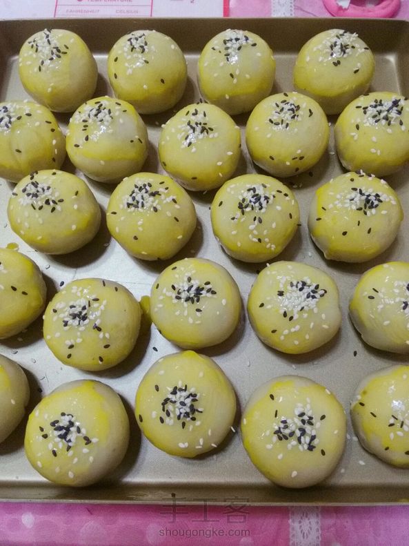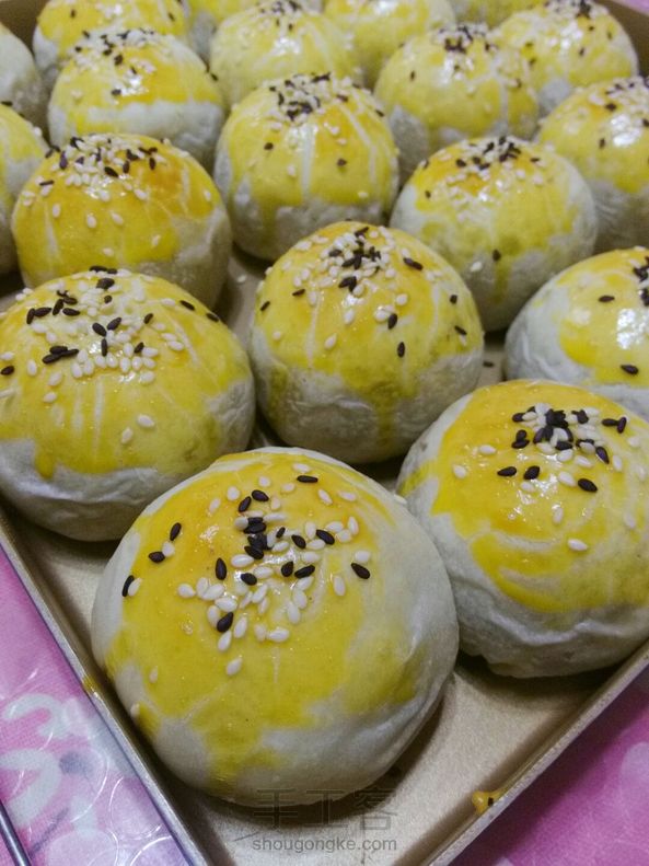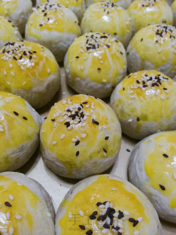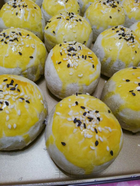 蛋黄酥,我却是第一次做,因为不是很喜欢豆沙,也不怎么爱咸鸭蛋,但是尝了一个味道却出乎意料的搭配!植物油做的,受不了猪油的味~