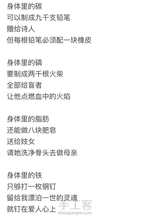 身体里的铁 只够打一枚钢钉 留给我漂泊一世的灵魂 就钉在爱人的心上