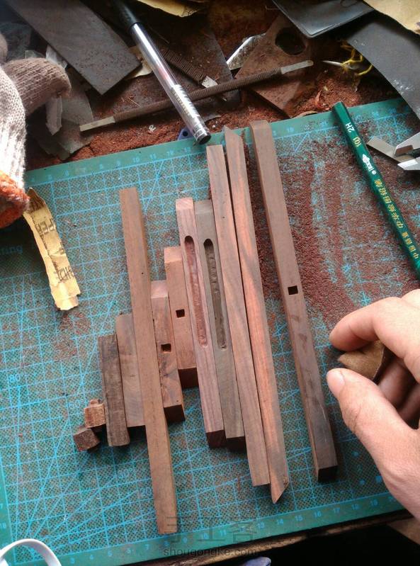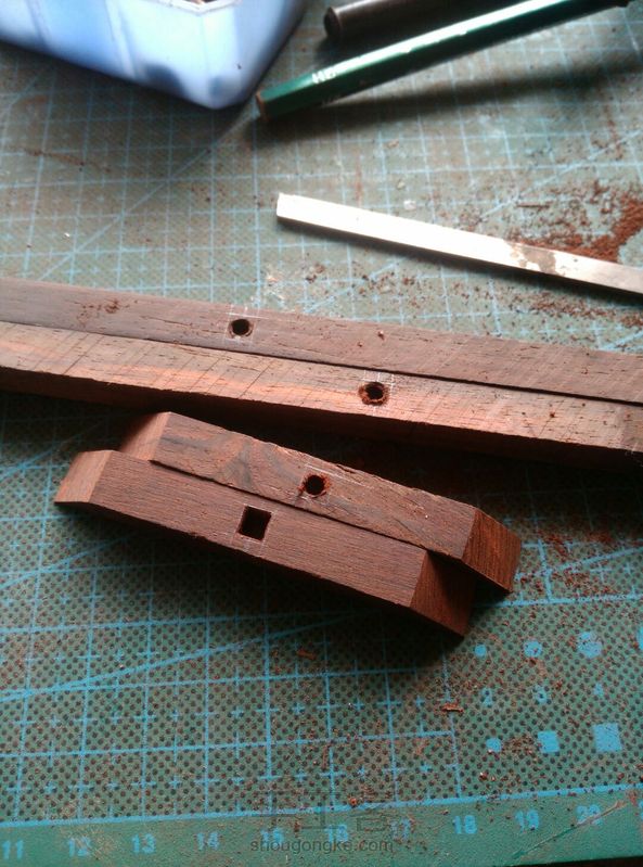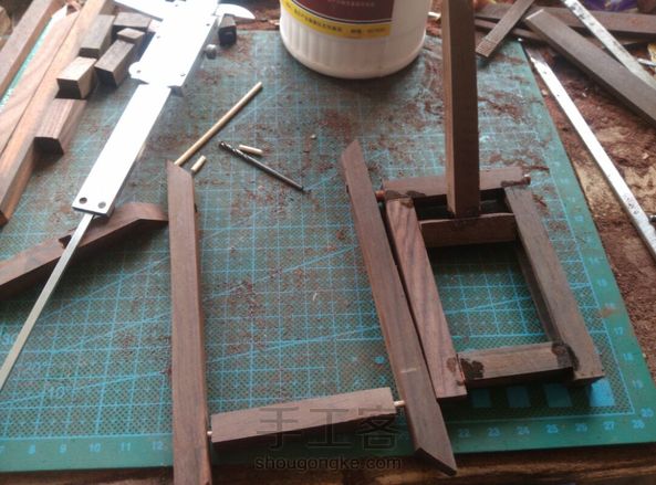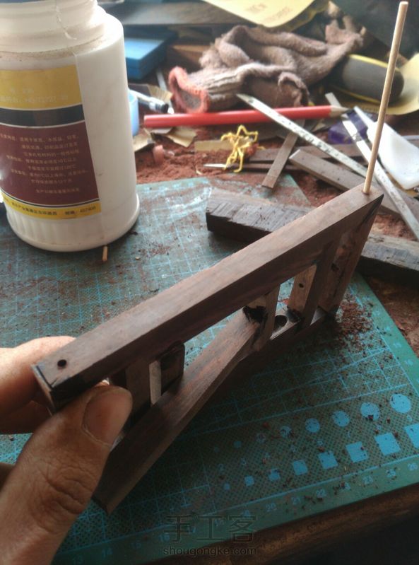 用酸枝做了个平板的支架,也可做临摹字帖架,当然放手机也行。开始想做榫卯的,然而对木工一窍不通,单纯的用胶粘肯定不会太耐用,就在主要部件链接处打孔然后插入小木棍,再用粉把孔堵上。