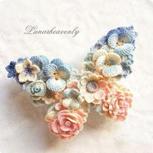 很多人问花片定型,就是用水与淀粉煮开,与烧汤一样,然后把花片放进去煮一会,凉了拧干平铺晾晒,就好了。水与淀粉的比例我是按照感觉来的,与烧汤一样