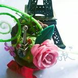 好久没有冒泡啦,来冒个泡。 这个应该是...一个月..前做的....吧!塑料花和粘土花的结合,再加俺最爱的巴黎铁塔!特别粗糙,大神勿喷