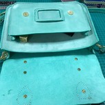 薄荷绿擦蜡牛皮扣带钱包