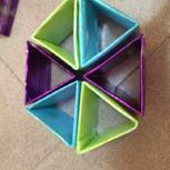 随意跟着手工客的朋友做滴,三角形加了卡片,受力和稳固都增加了…还加了底座,很随意所以没拍!