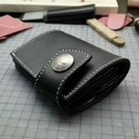 双色线手缝植鞣黑色短夹,3.38斩,532麻线
