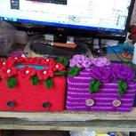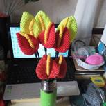 朋友们结婚,送朋友的礼物。一束钩针玫瑰,一束中国结艺玫瑰。