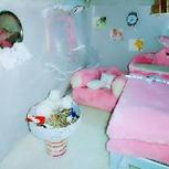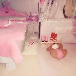 粉嘟嘟的娃屋,4件套床品,沙发,床,柜子,书架,鞋架,台灯,秋千,鞋,衣服。。。。。。。全部手作 实现了小时候的梦想,凑齐9张发手工圈。😄 大学宿舍没有空间只能放收纳箱了^O^