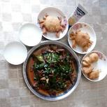 开餐了!炸“螃蟹”,韮菜炒羊肉,粥!