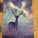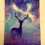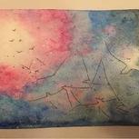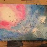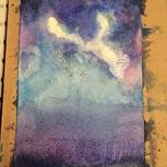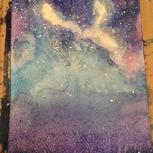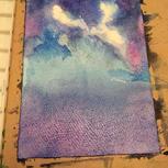 我也来一副临摹的星空吧!第一次晕染还不是很会!继续努力吧!水的掌控,就是弄出不别人晕染的状态!是水多了还是少了?求指点
