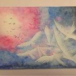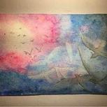 【飞翔】还未画完,等明天干了继续覆盖,最后一张图是我用的工具,基本都是便宜货,水彩工具太贵了,练习不用太好吧!