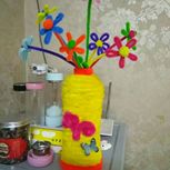 扭扭棒改造的花瓶。第一个瓶子的前身是沐浴露空瓶。