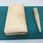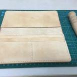 第二个钱包,原色植糅革,不知道为什么摸了牛角油之后会颜色不均匀。封边前得用刀削平,胶水要适量,不然接缝处会变黑。我的削边器好像不太好用啊😳