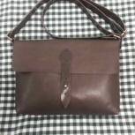 在微博上看到荒木发的邮差包教程之后,按捺不住立马拿之前买的胎牛铬鞣皮做出了如图,手缝肩带长度又达到了新高度。看起来还是很粗糙,哎,不太好的皮配不太好的手艺咯。没有处理边缘,皮刮伤严重,凹凸不平。不知道能不能当作生日礼物,还是说买好皮重新做一个呢?暂且可以当作情侣包吧~