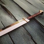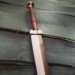 复刻八面汉剑:剑身总长27CM,刃长14.5CM,柄、鞘为紫光檀,全黄铜装具!全手工开V打磨。没有砂带机就是有些累!