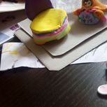 哈哈,用粘土做了一个喵喵板凳和三双拖鞋,不喜勿喷