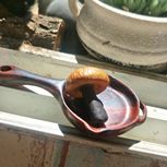 做了一个琵琶,料子超棒,得朋友信赖,拿给我做,想过做香插,只是技术不行,后来切了料做了一把紫檀小琵琶,巴掌大,料子超润,在手里很有重量
