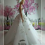 #芭比婚纱#预告款终于完成啦!!!👏单裙子部分前长29㎝,拖尾37㎝,超级大哦。钉珠真的很用心的去弄,做了好久好久……给自己鼓掌👏。朋友们喜欢吗?这款整理照片后发教程哦!