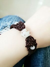 十年前,买的琉璃珠。 十年后,看到网上一款手链编织很喜欢。 学着编,琉璃珠不够,改编了一下。