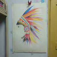 手绘彩铅印第安少女