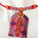 宝宝以前的护身符脏了…学玖玥老师的桃花做了个新的护身符…宝宝很喜欢…