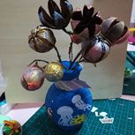 周末出去玩捡的不知名果实,加上之前做的史前海底花瓶。涂涂抹抹,我们来做一个插花吧