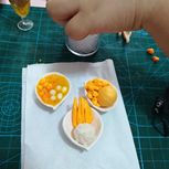 和闺女每次去许留山都必点的芒之恋,cos一个,小家伙负责所有圆形的塑形,倒胶水,放冰块