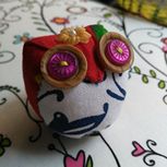 用碎布头做的小猫头鹰,和鸡蛋插不多大小吧
