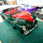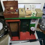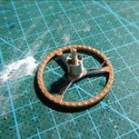 过去收了一台老爷车模型,破损比较严重,车轮掉了,方向盘轴断成几截,一个门轴完全碎了,转向机构和方向盘根也全都断了。用树脂复制了一个门轴,重新制作了转向机构的轴,方向轴。用铜棒和铜丝制作了倒镜。总算让这台老爷车重新恢复正常了。