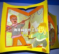 旋转木马书,又称星星书。第一页,本来是个理念化的设计,后来就做出来了。构成组合上并不是很合理,不过涉及的技巧很多,有刮涂、彩绘、剪纸、拼贴和立体构成。一起期待第二页的创意吧