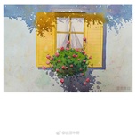 临摹一幅网图,这个窗前花系列很喜欢 下次有空再来一个 为什么我总是画不出原图那么绚烂的色彩呢?