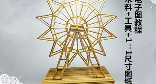 摩天轮模型(一次性筷子、烧烤竹签第二次制作,既能转动又有灯)