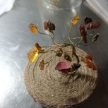 琥珀发财树+芬达空瓶上半部分+粘的麻绳泡沫=防尘小摆件(玻璃钟型罩还要花钱,自己做的也不差😂)
