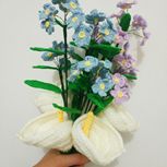 熬了2个大晚上花蕊缠好粘好,小fa fa终于完工组合好啦,手都要废掉了。海芋花勿忘我。