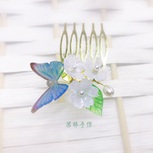 『苏林手作』雨后无尽夏/紫阳花/绣球花 光明女神蝶 发钗插梳
