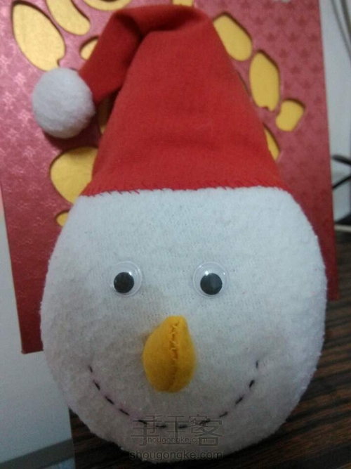 :别忘了小雪人帽子的白边,如果用白色绒绒的布料会比较有感觉,小鱼儿没有那样的布只好用无纺布代替了;还有围巾要是红白相间毛线的就更好了呢~