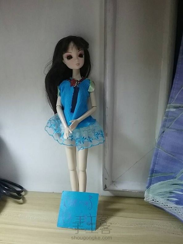 把布料一面剪开,在被剪开的一面上缝上钮扣,在肩膀处把布料缝上(如图)