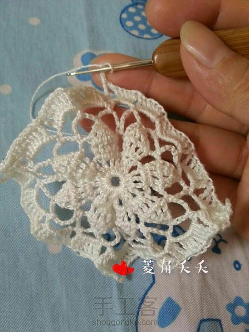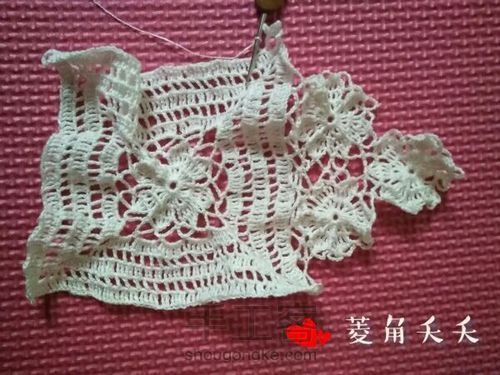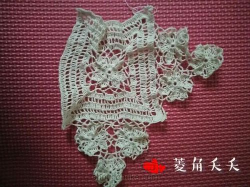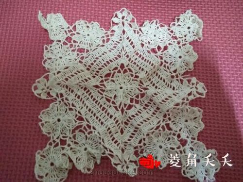 小花就是方形中间的花样,钩出2个8瓣的,1个6瓣的,再把三个花连在一起
