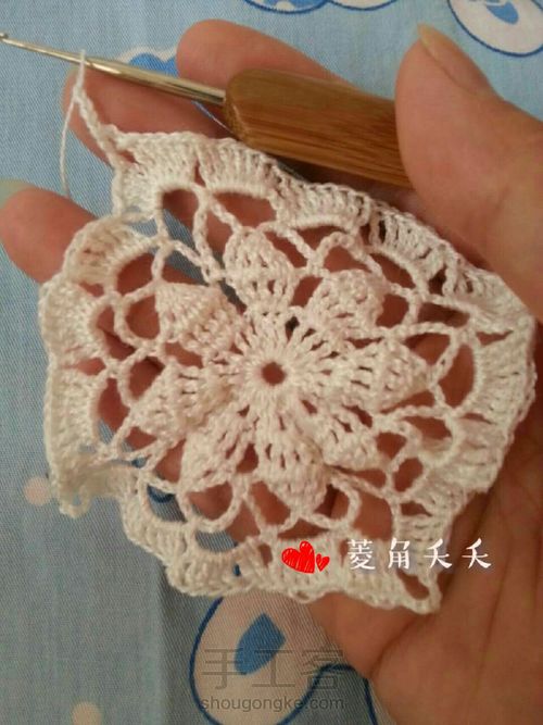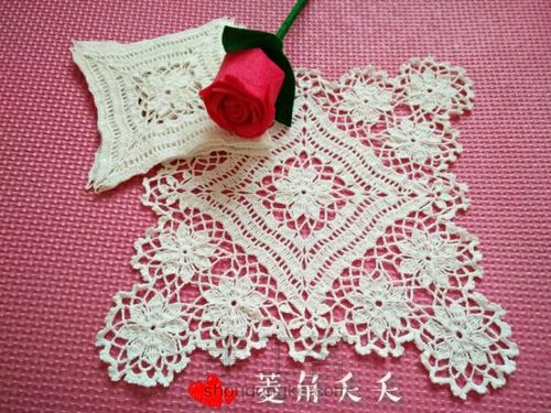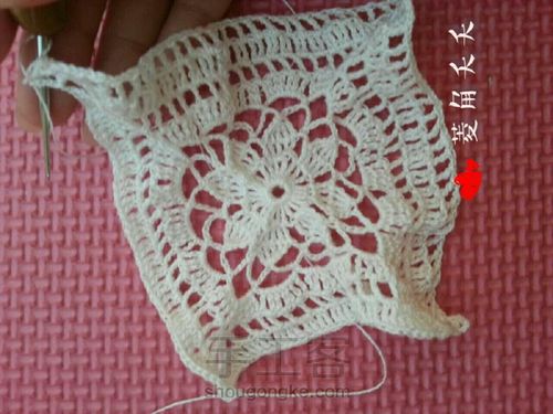 然后按图纸在方形杯垫上,钩出如图小花